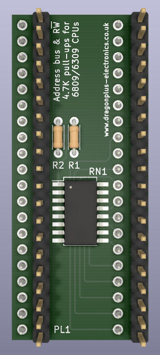Enhance the reliability of your 6809, 6809E, 6309 or 6309E processor (all speed variants) with this simple adapter. See 6809 Pull-up Resistors.