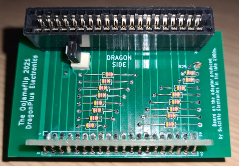 The Oojamaflip 2021 is a enhanced version of a device manufactured in the late 1980s for the Dragon 32 & 64 computer by Richard Sutcliffe of Sutcliffe Electronics. His original boards were very ingenious and well made devices which have stood the test of time.
