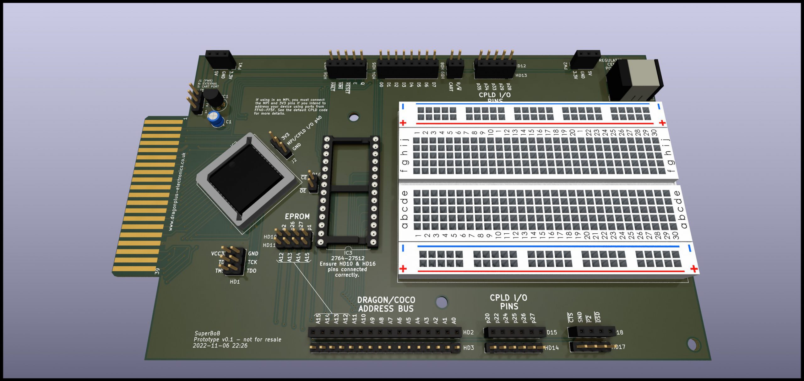 Having developed the SuperSprite FM+ board, and realised just how simple and flexible a CPLD could be, I have for a long time considered developing and releasing a simple electronic developer’s board, which would see a CPLD sitting fully across the address bus, thus allowing the CPLD to decode port addresses, and thus be used in place of the 6821 PIA that was on Maplin’s board. CPLDs can also be used to do a whole lot more than port addressing, and thus the board I plan to develop is limited only by the size of the CPLD and the developer’s imagination.